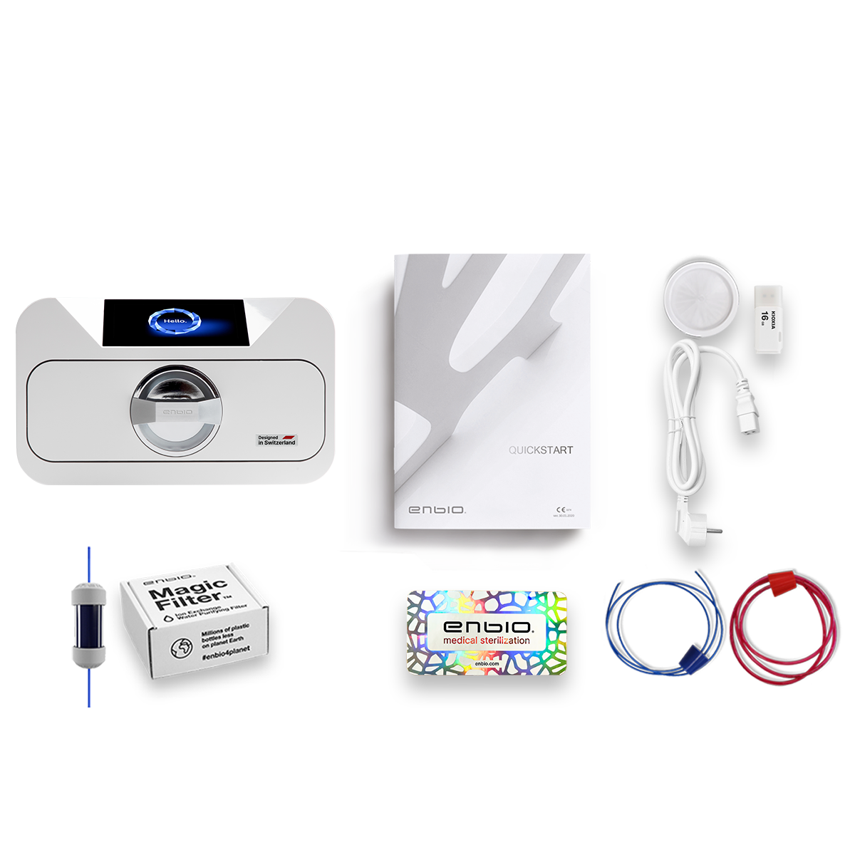 - Unitate flash USB care conține manualul de utilizare, certificatul TÜV *, garanția, software-ul Enbio Data Viewer.